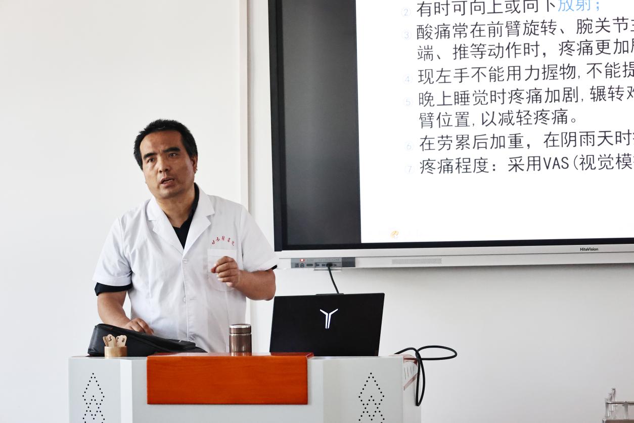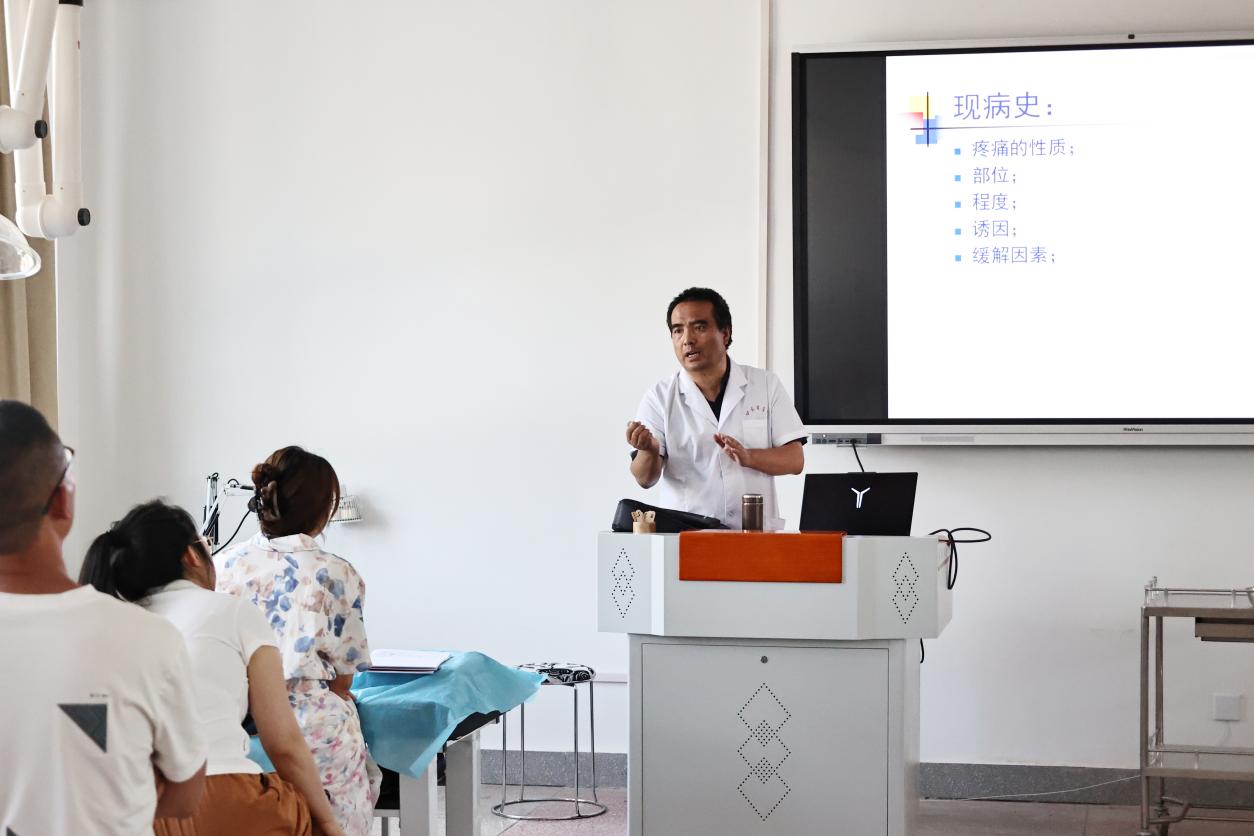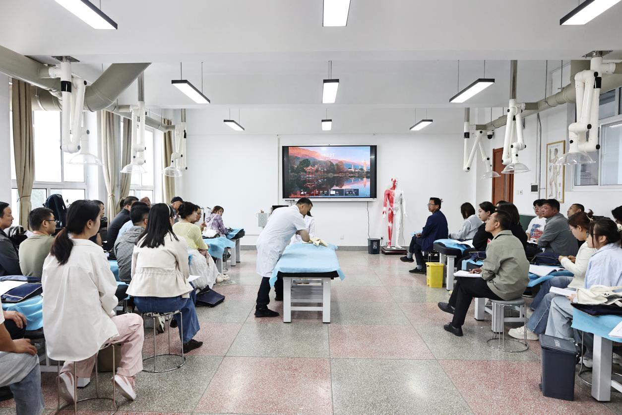 本次培训以针灸推拿技术治疗基层常见病为重点,采用基础理论与实践操作相结合的方式开展。在为期5天的学习培训中,甘肃医学院刘君奇教授围绕《经络腧穴与刺法灸法》《特定穴的应用》《针灸处方及配穴》等专题,开展模块化实践教学,强化针灸技术规范化操作训练;郑强霞教授聚焦《郑氏针法基本理论》《郑氏针法临床应用》,系统讲授郑氏针灸的核心手法与临床经验;王利军副教授分别以《基本推拿手法培训》《常见疾病推拿治疗》《复合手法及脊柱整复手法》为题,进行全流程场景化实训教学;刘晓刚副教授围绕《肩周炎诊断与治疗》《网球肘诊断与治疗》等主题,进行了示范教学。