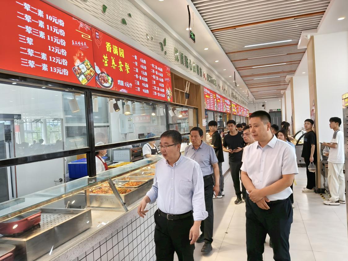 王坤深入学生第一餐厅,随机检查各档口菜品质量,听取基建后勤处负责同志和餐饮委托经营者情况介绍,询问餐厅原材料采购、食品留样、环境卫生、菜品价格等情况,并与同学们一同共进午餐,面对面了解学生对食堂菜品价格、口味等方面的意见建议,询问同学们在校学习、生活中遇到的困难。针对同学们对食堂管理和服务方面提出的意见建议王坤强调,要切实提高政治站位,强化责任担当,严格落实食品安全主体责任,完善内部管理制度,加强对食品采购、储存、加工等各环节的监督检查。要持续改善就餐环境,丰富饭菜品种,提升饭菜质量,满足师生饮食多样化需求。要持续加强从业人员的思想教育和警示教育,牢固树立“安全第一”理念,不断提升餐饮服务水平。