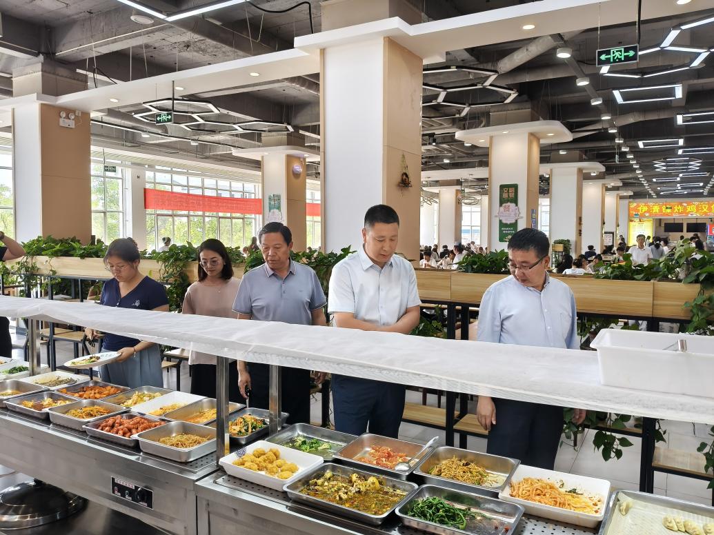 为认真贯彻落实校园餐饮管理要求,筑牢食品安全防线,6月10日中午,校长王坤到学生第一餐厅检查餐饮工作,并和同学们一起用餐。党委委员、副校长练成,办公室、学生工作部(处)、基建后勤处负责同志一同参加。