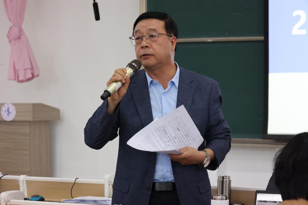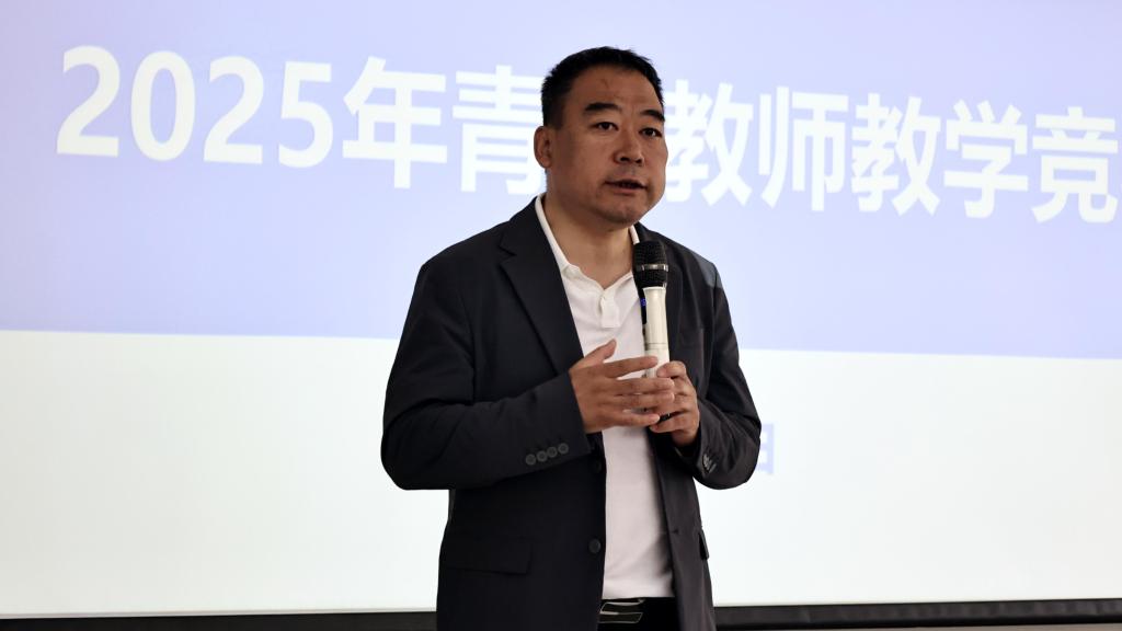 比赛的最后,刘凯副校长讲话指出,青年教师是学校教学事业的未来,对于提升教学能力至关重要。他强调,要提升青年教师教学能力,一是精准把控节奏,精心设计互动环节;二是课件图文并茂,善用动画效果;三是教学手段运用贴切,注重仪表仪态;四是思政教育自然融入,坚持学生中心,引导学生理解应用。
