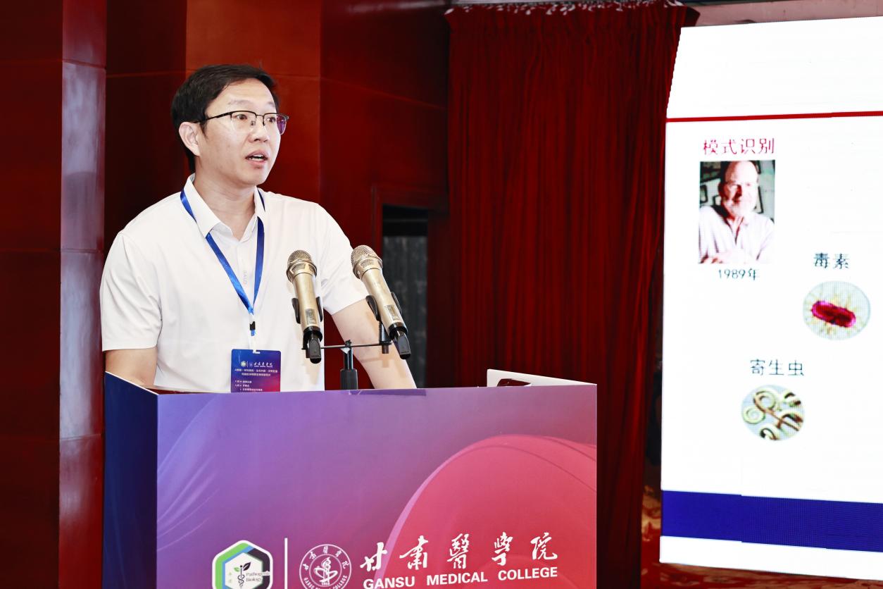 在学术报告环节,来自全国多所高校及科研机构的专家学者带来了精彩的思想碰撞、知识传授和技术输出。海南大学段玉聪教授以“主动医学的哲学思考”为题,从哲学高度为医学病原生物学的发展路径提供了全新的思考维度,引发了与会学者对于医学本质与发展方向的深入探讨和强烈共鸣。北京大学游富平教授分享了基于机器学习的抗病毒药物鉴定研究成果,展示了前沿技术在医学病原研究中的强大应用潜力,为药物研发领域提供了新的思路。甘肃医学院刘君奇教授以“针灸镇痛:传统智慧与现代科技的跨文化与跨学科融合”为题,带来了中西医结合领域的研究成果,为学科发展提供了新的视角。随后,中山大学张辉教授、中国科学院上海免疫与感染研究所江陆斌教授、中国农业科学院兰州兽医研究所景志忠研究员、深圳医学研究院桂龙研究员、南方医科大学陈晓光教授、国科大温州研究院核酸新药研究中心吴敏研究员、北京大学彭宜红教授、南京医科大学苏川教授、陆军军医大学徐文岳教授、兰州大学韩俭教授、复旦大学上海医学院张俊琪副教授、北京联影研究院王昱青博士、甘肃医学院赵玉敏教授结合自身科学研究最新成果,分别作了精彩深刻、引人入胜的报告。