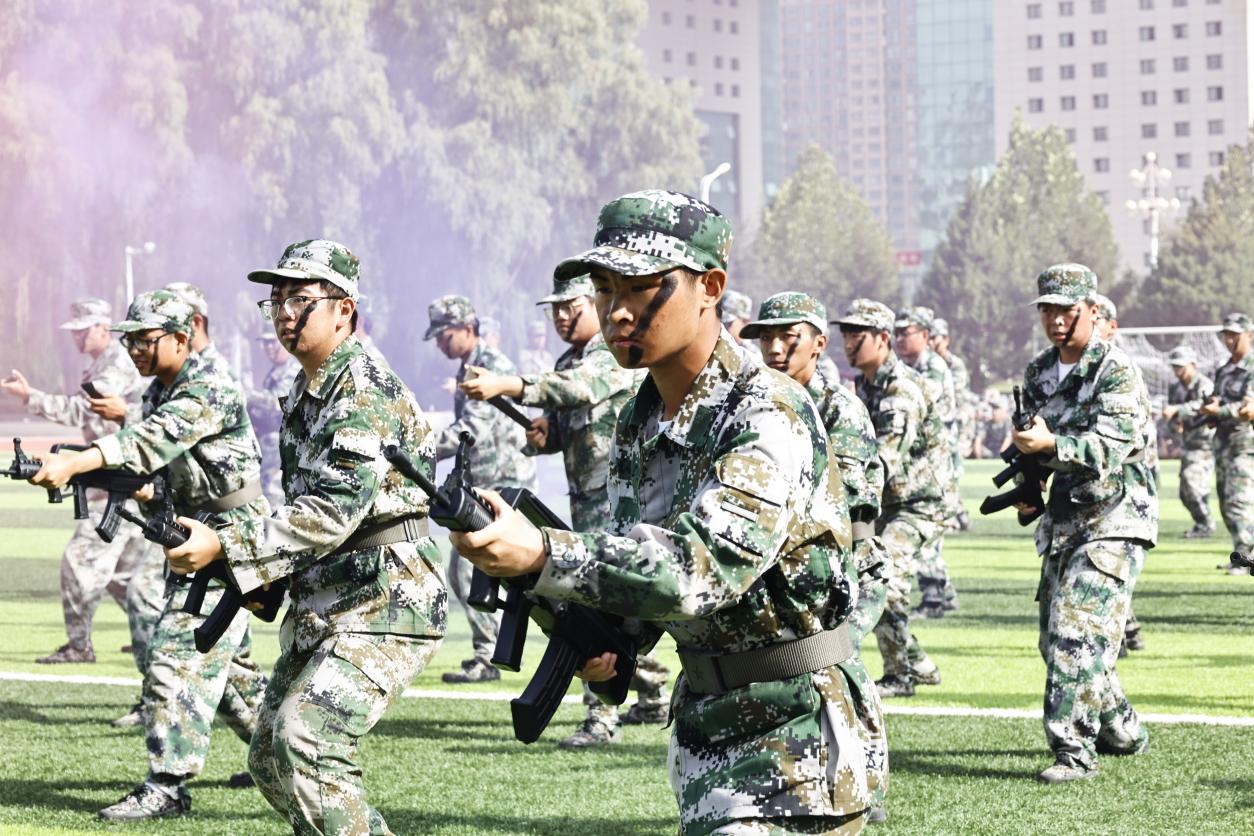 大会在庄严的升国旗、奏唱国歌仪式中拉开帷幕。随后,2025级新生军训汇报表演正式开始,各方队军容严整、士气高昂,同学们步伐铿锵、口号嘹亮,充分展现了甘医学子经过军事洗礼后焕然一新的精神风貌和团结协作、纪律严明的训练成果,彰显了新时代青年的蓬勃朝气与坚韧品格。