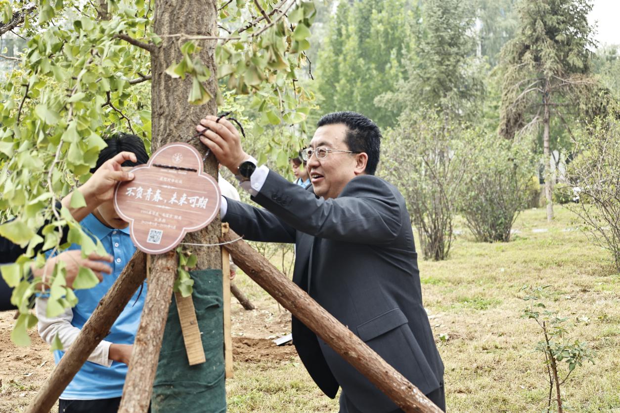 随后,校友们热情认捐了寄托着自己深情的树木。在指定的栽植区域,校友们兴致勃勃地拿起铁锹,亲手栽下一株株象征希望与未来的树苗。他们挥锹培土,扶正树苗,细心浇水,每一个步骤都认真细致,现场气氛热烈而有序。栽植树苗后,校友们郑重地将认养铭牌悬挂在自己亲手栽种的树木上,这一枚枚铭牌,不仅是对树木归属的标识,更是连接校友与母校之间深厚情感的见证。