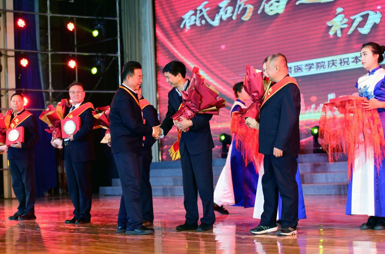 文艺演出现场,学校为从教满三十年的教师颁发了荣誉证书,表彰他们数十年来坚守育人初心、深耕医学教育事业的卓越贡献。也为校友代表颁发了校友联络员聘书,期望他们能积极搭建联络平台,凝聚校友力量,共促母校发展。
