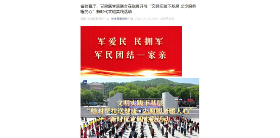 5月13日,甘肃省教育厅、甘肃医学院联合举行“文明实践下基层 结对帮扶送健康 志愿服务暖民心”新时代文明实践活动在我县举行。甘肃医学院党委宣传统战部部长韩小林致辞并宣布活动启动。副县长周芳主持活动。