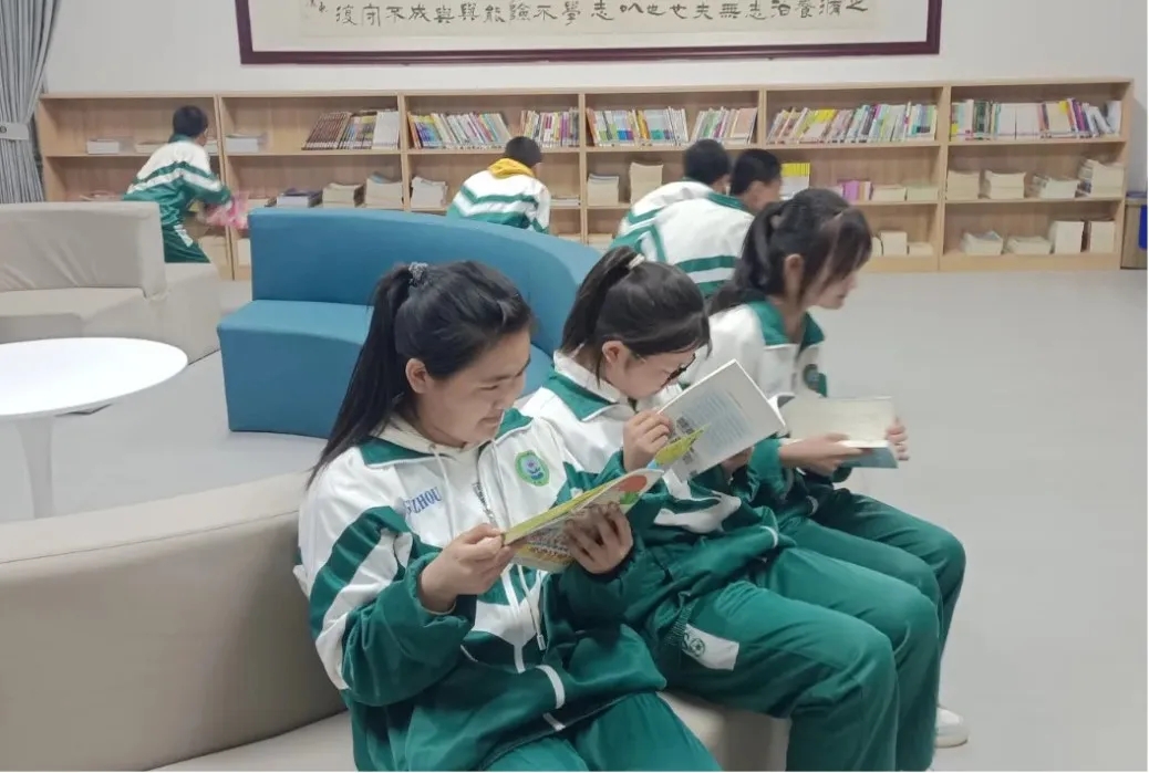 瓜州县第二中学举办了以“与经典同行 打造人生底色”为主题的读书节活动。学校在教学楼各楼层摆放图书,把书本放在离学生最近的地方,让学生随时随地阅读,学校溢满书香气息。