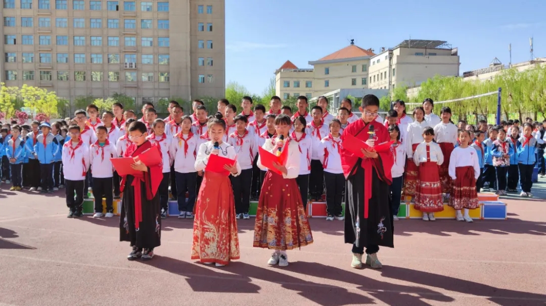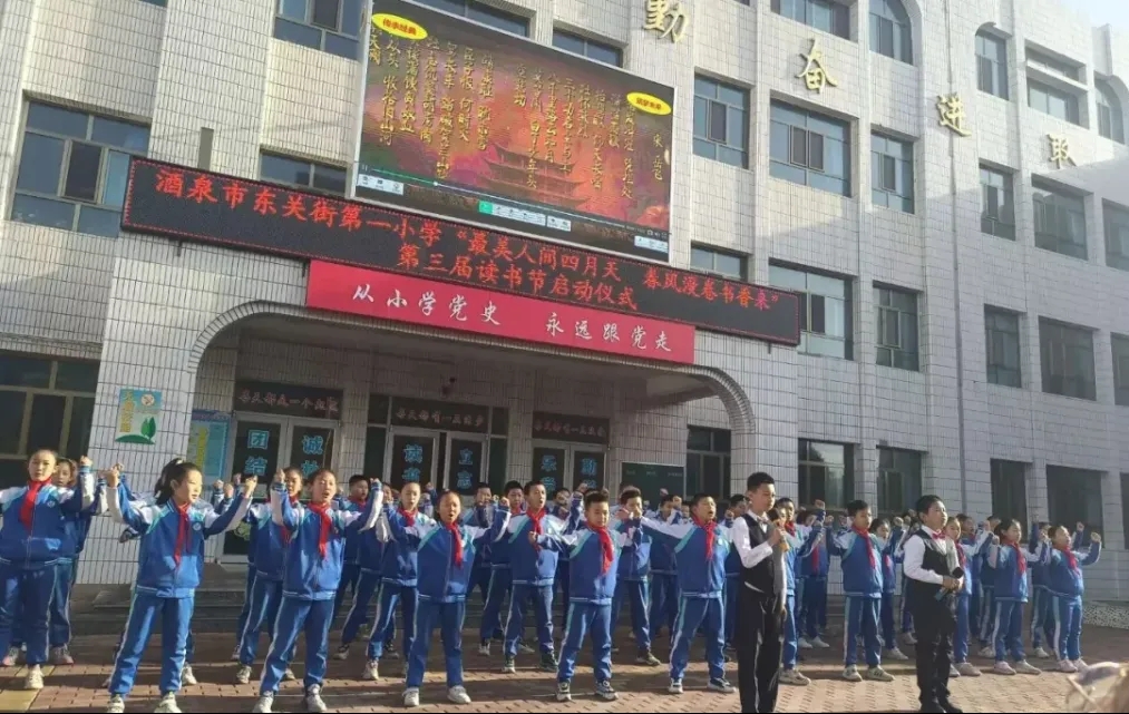 酒泉市东关街第一小学举行了以“最美人间四月天 春风漫卷书香来”为主题的校园读书节启动仪式,老师和同学们带来经典诵读《满江红》《一路书香,一生阳光》等。