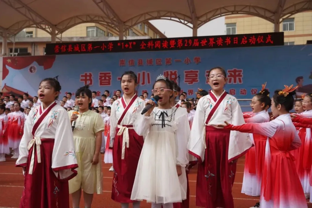 4月19日,崇信县城区第一小学举行了“1+X”全科阅读暨第29届世界读书日启动仪式。师生们表演了朗诵《书的国度》《咏梅》等精彩节目,展示了广大师生良好的精神风貌和书香校园建设取得的喜人成果。