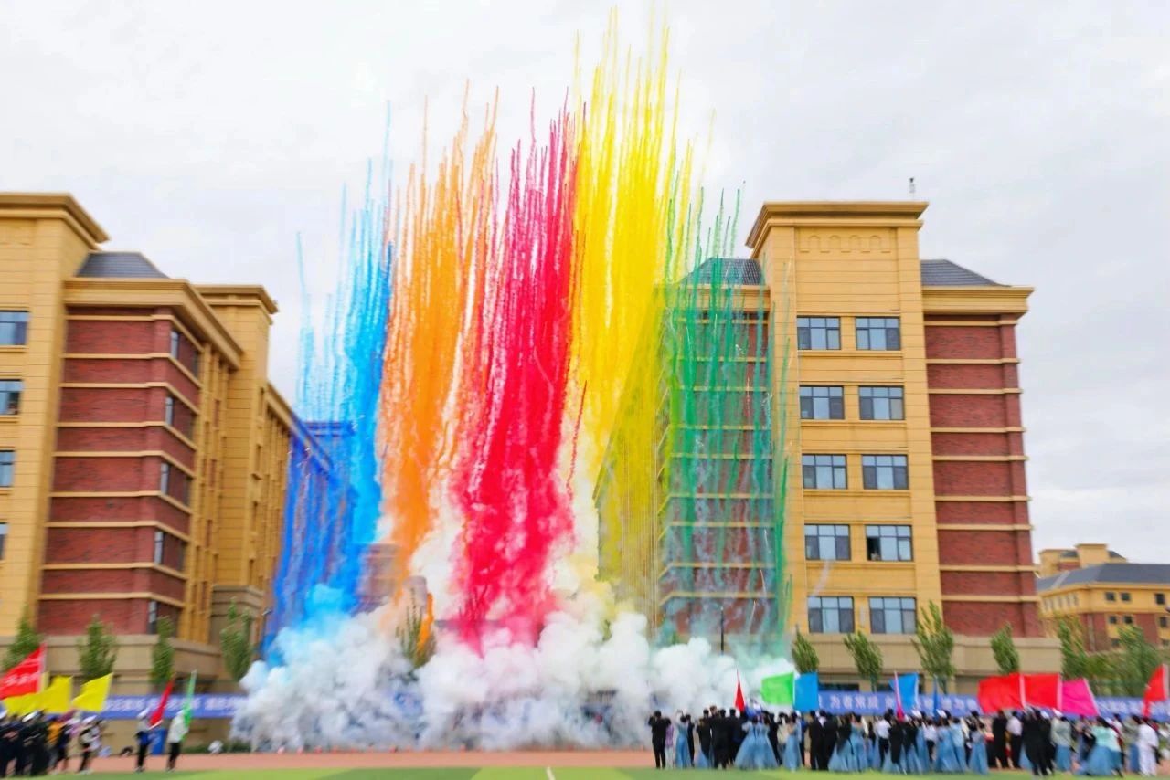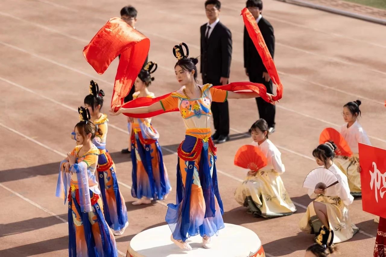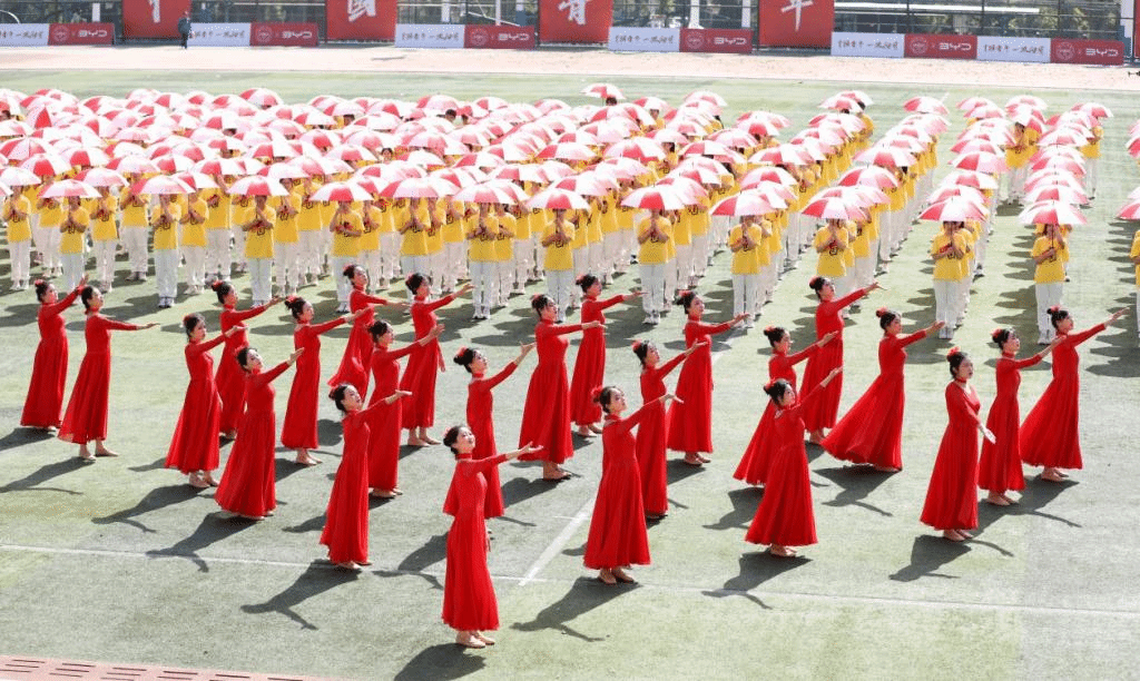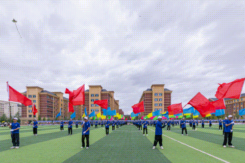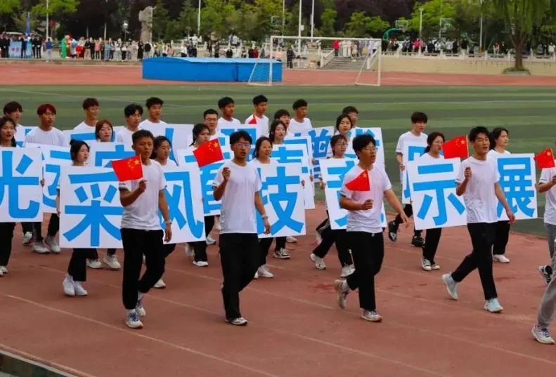 田径场上横幅高挂、彩旗飘扬师生们满怀喜悦以饱满的精神状态共赴这场力与美的运动盛宴