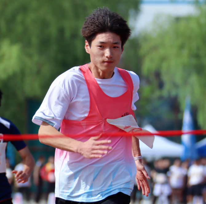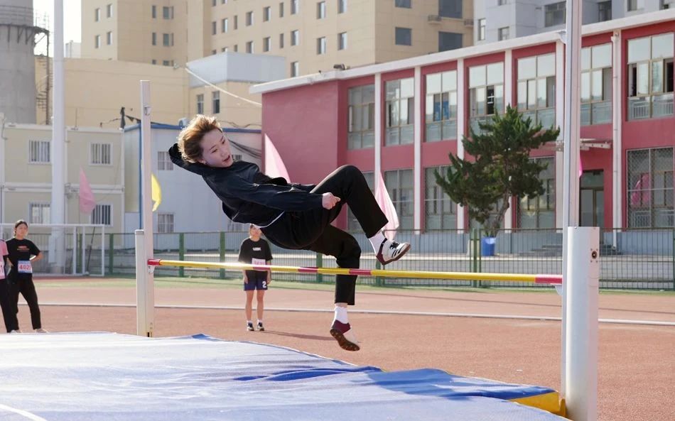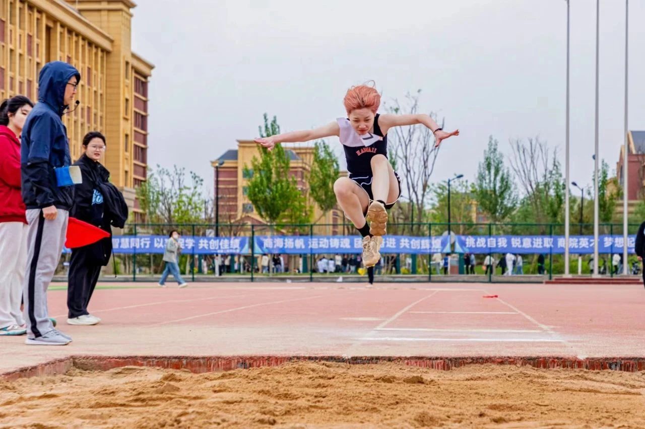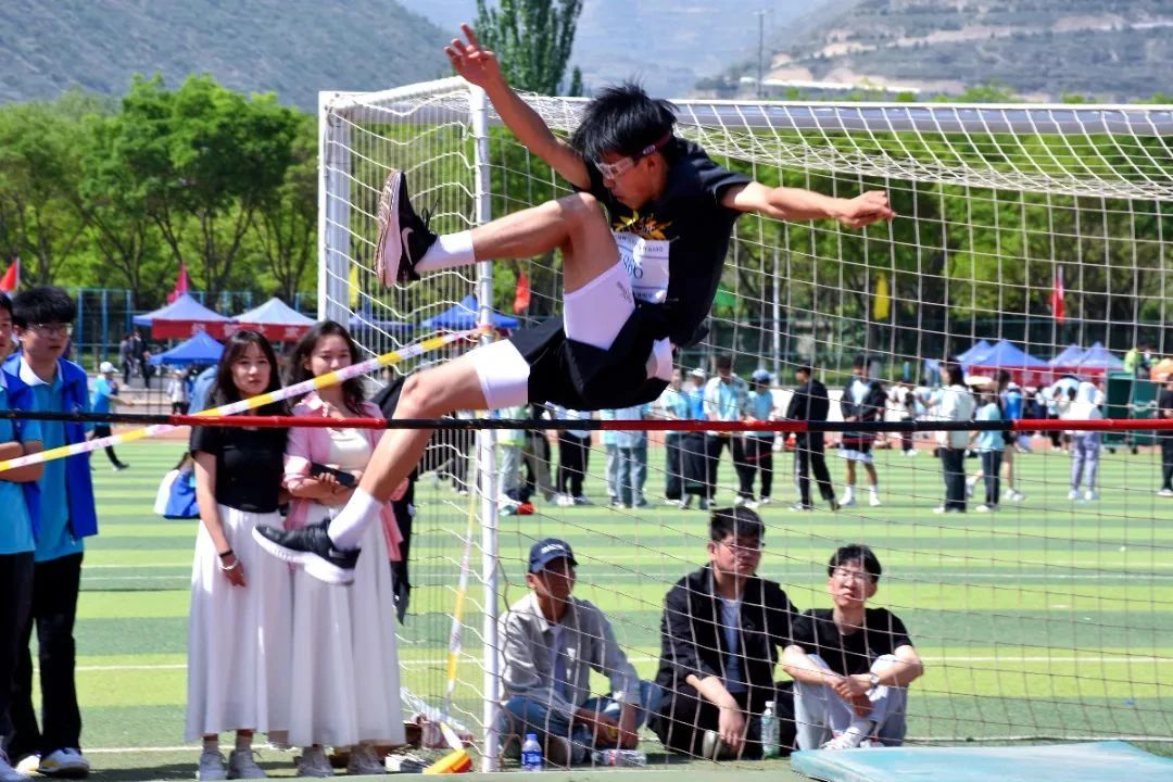 学生目光如炬,屏气凝神快速起跑,蓄力一跃行云流水的动作里