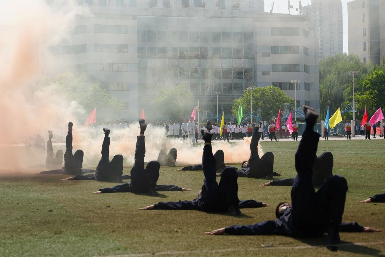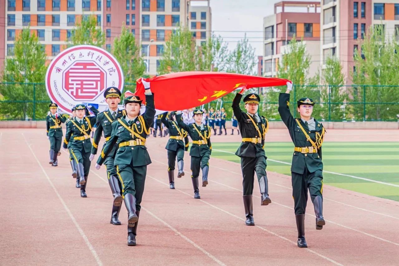 各方队,迈着铿锵有力的步伐展现出兰科师生激情澎湃朝气蓬勃的青春风采