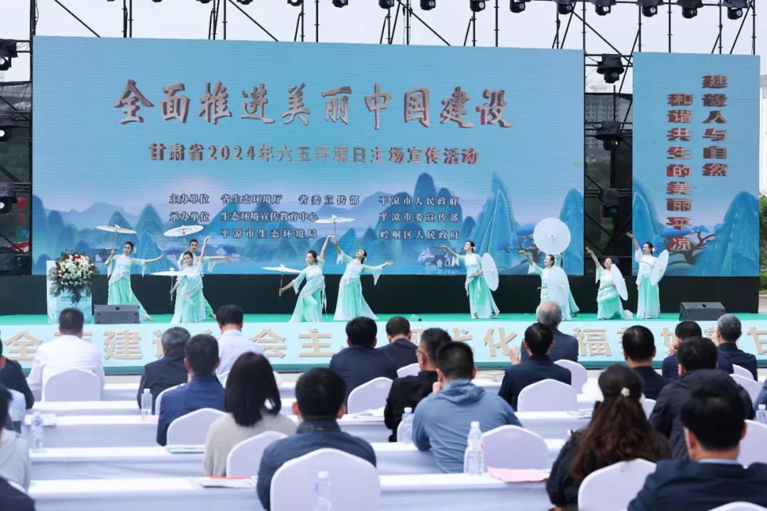 6月5日上午,甘肃省2024年六五环境日主场宣传活动在崆峒区举行,活动以“全面推进美丽中国建设”为主题,通过展览、视频、主题歌舞等多种形式,生动讲述甘肃全力推进生态文明建设的生动实践和丰硕成果,动员社会各界积极投身建设美丽甘肃、实现人与自然和谐共生的现代化伟大实践。
