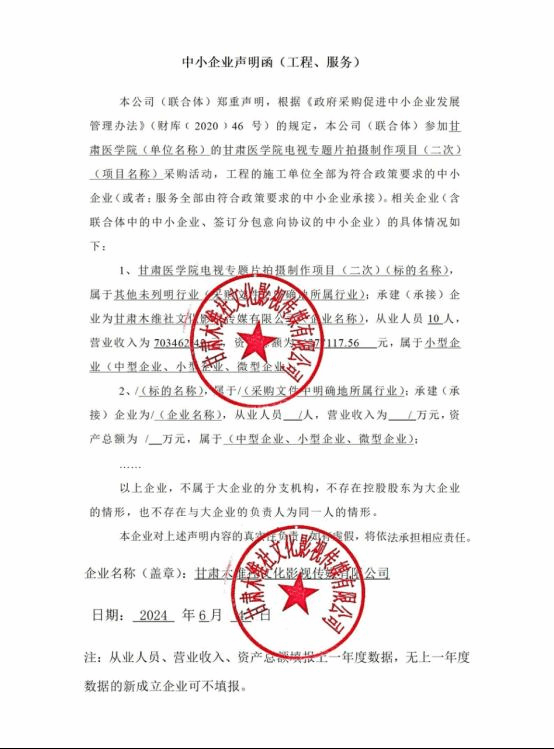 二、采购内容:电视专题片《养德崇医 见贤思齐——砥砺奋进中的甘肃医学院》的拍摄制作,具体内容详见磋商文件。