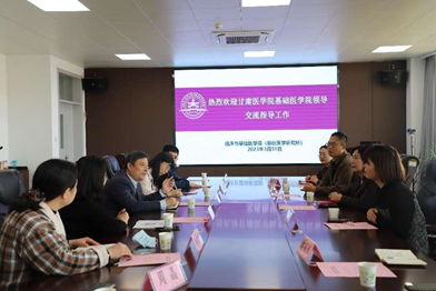 3月31日上午,在山东第一医科大学济南校区基础医学院开展了座谈交流,孟庆建书记代表山东第一医科大学基础医学院(所)对我院一行表示热烈的欢迎,并详细介绍了基础医学院(所)的基本情况,双方就专业建设、教学实践、学生培养、课程建设、文化建设、学生实习、科学研究等方面进行了深入沟通。