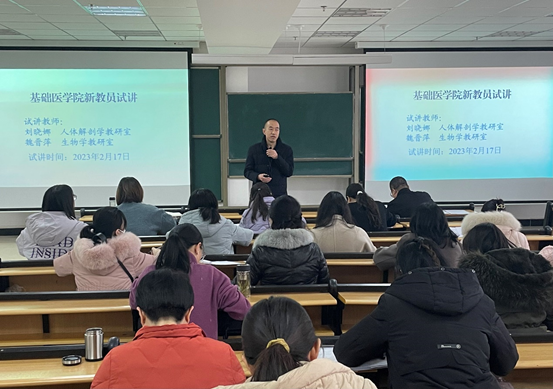 基础医学院副院长雷世鑫主持,基础医学院全体教师参加试讲活动。