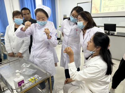 本次培训邀请了和平医院护理部总护士长王丹乐和儿二科护士长杨晓云担任主讲。培训现场,王丹乐结合自身丰富的临床工作经验,细致讲解了新型冠状病毒抗原检测的原理、适用人群、抗原检测步骤、结果判读及使用后处置等。儿科护士长杨晓云对抗原检测的全部环节进行了实操演示,在场培训人员二人一组进行了抗原互检,切实掌握了检测方法。
