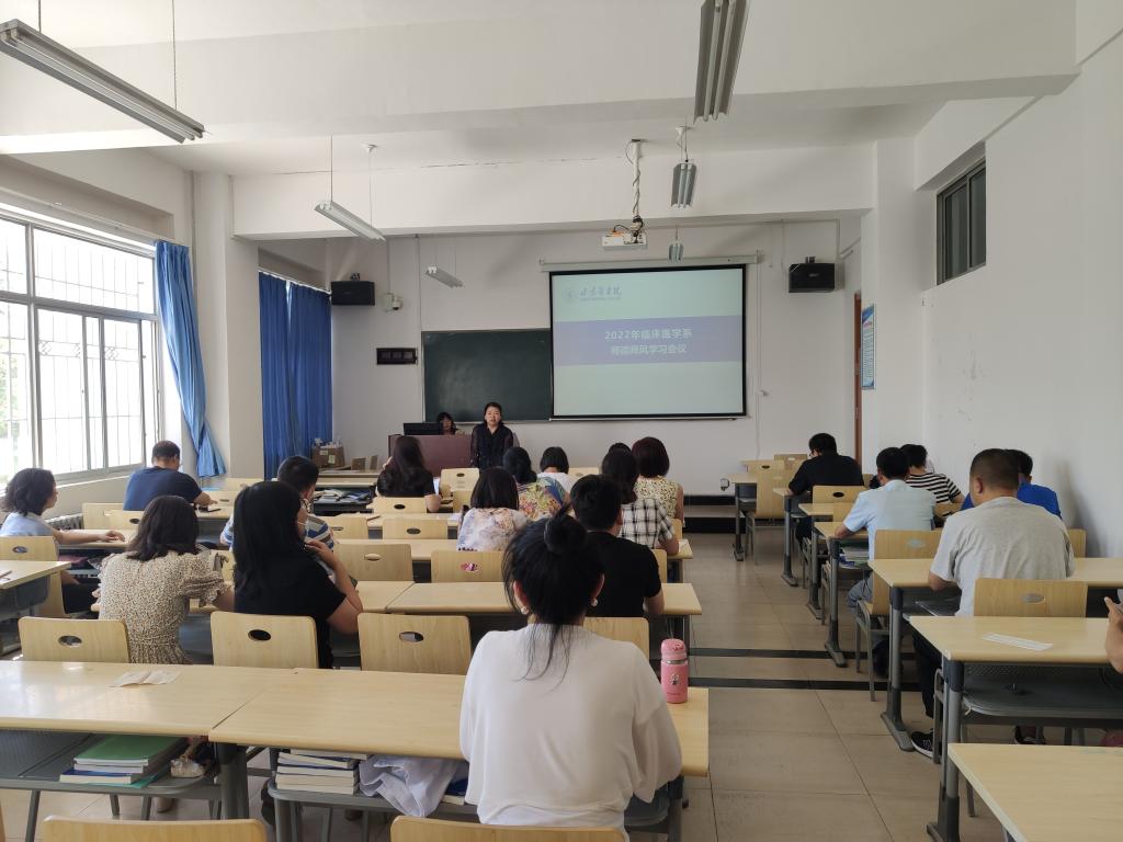 为进一步加强临床医学系师资队伍建设,不断提升教师队伍的整体素质,根据《甘肃医学院师德师风建设工程领导小组办公室关于开展2022年度师德师风建设专题教育培训》要求,6月28日至29日,临床医学系组织全体教师开展了以“践行立德树人初心、争做师德师风标兵----新时代高校教师师德师风建设”为主题的师德师风教育专题培训会。