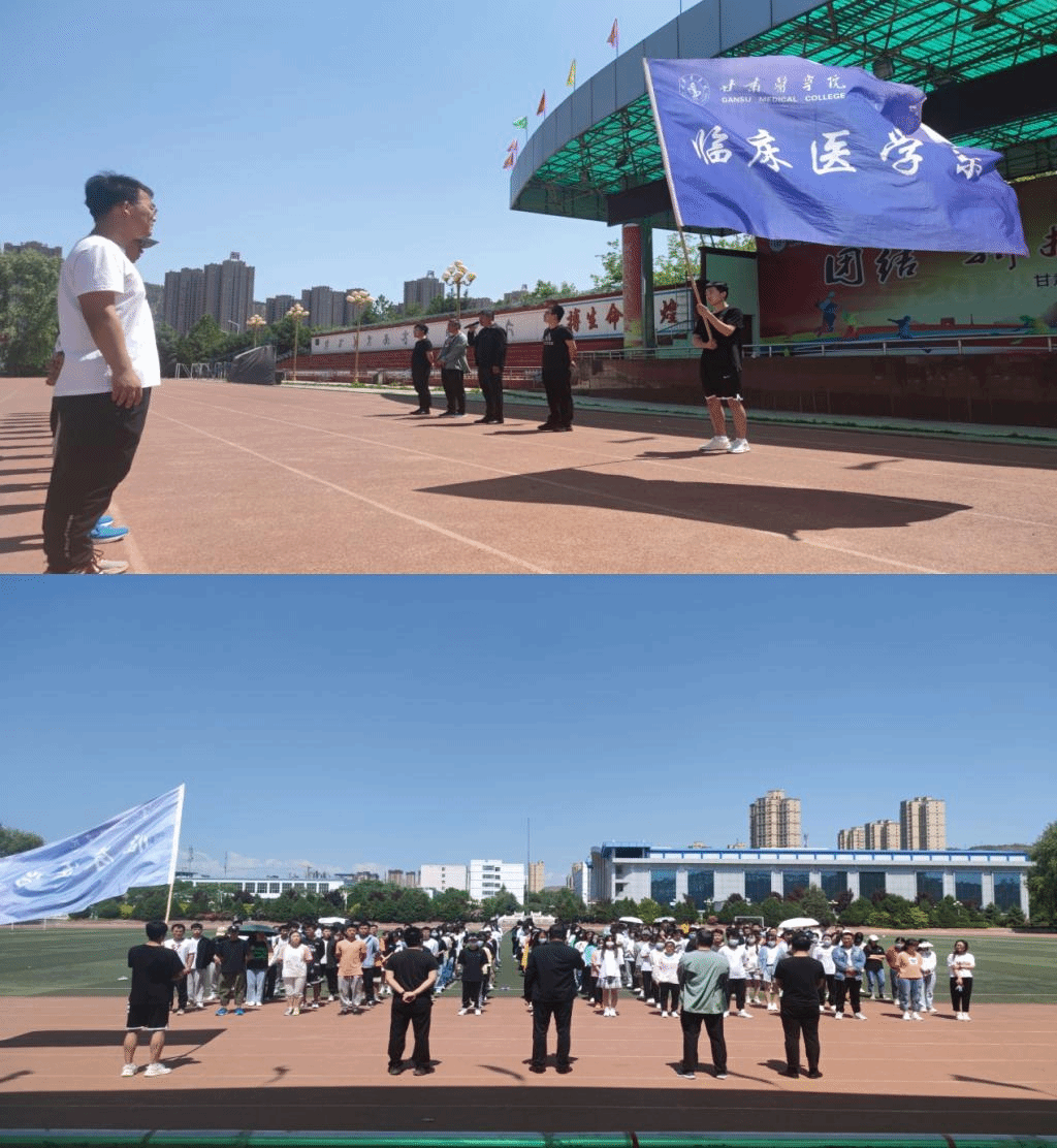 5月22日,临床医学系体育代表队在学院体育场举行了2022年春季田径运动会动员出征仪式;临床医学系党总支书记李宝成、学生科长李沛、年级主任刘金虎、团总支副书记李轶凡、体育代表队359名运动员参加了仪式。