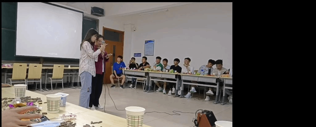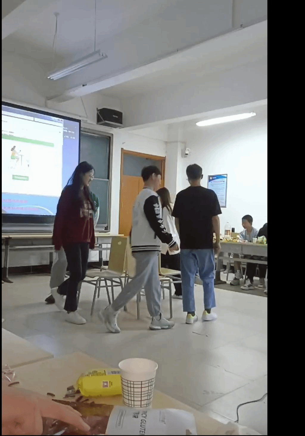 教室里,每一位同学都积极配合,在音乐声中忘却烦恼。他们精神充沛,朝气蓬勃!休息的时刻,两个小游戏《传递纸杯》和《抢凳子》又活跃起来了气氛。