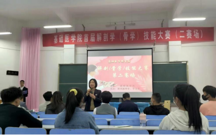 为加强我院学风建设,激发学生学习兴趣,培养医学生的专业素养,增强学生的团队意识,拓展校园第二课堂,丰富校园生活,达到以赛促教、以赛促学、以赛育人的目的,4月28日下午16时,由解剖、组胚教研室,基础医学院学生科,基础医学院学生会联合主办的解剖(骨学)技能大赛在一号教学楼第二大教(一赛场)、第四大教(二赛场)顺利举行。