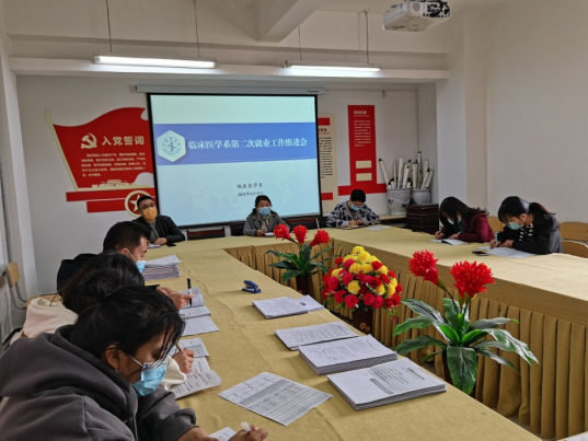 为进一步加强和改进就业工作,认真分析和研判就业形势,努力实现毕业生高质量和更加充分就业,4月19日, 临床医学系召开2022届第二次毕业生就业工作推进会。系部负责人、毕业班班主任、辅导员等参加会议,临床医学系学生科副科长李沛主持会议。