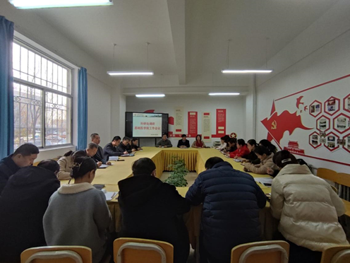 基础医学院副院长杨建设主持调研工作会议,基础医学院督学马春梅、部门管理人员、教研室主任及无课教师参加会议。