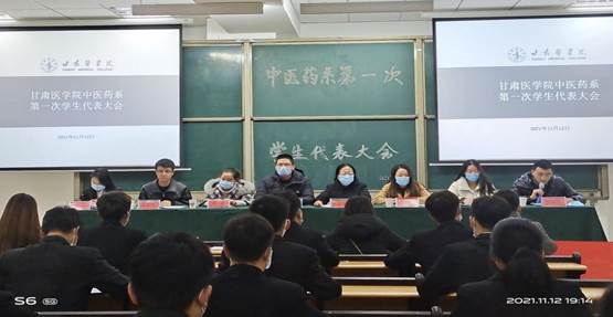 为更好促进中医药系学生工作的开展,按照学院安排,2021年11月12日,中医药系第一次学生代表大会在二号教学楼A座第14大教隆重召开。中医药系主任李莲英,中医药系党总支组织委员、学生党支部书记、学生科副科长柴亚强,中医药系党总支纪检委员关鉴茹,中医药系党总支宣传委员赵敏,中医药系学生党支部纪检委员、组织委员赵睿,中医药系团总支书记王皓立,中医药系学生会秘书长张浩飞,甘肃医学院学生会主席团成员姚鑫及中医药系全体学生代表参加了此次会议。