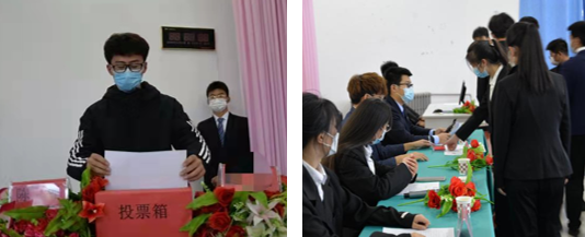 在大会主席团主持的庄严的选举大会中依次通过了对总监票人、监票人、总计票人和计票人的举手表决;表决通过了第一届学生会秘书长;紧接着代表们投票选举基础医学院首届学生会主席团成员;举手表决基础医学院参加甘肃医学院第二次学生代表大会的代表人选。
