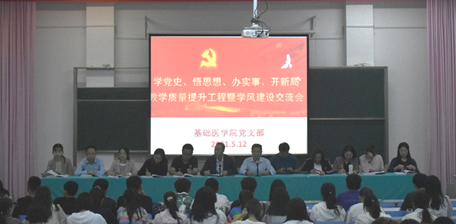 会议由基础医学院教务科科长田金玉主持,基础医学院党支部全体党员、部门管理干部、医学检验技术专业学生260余人参加了交流会。