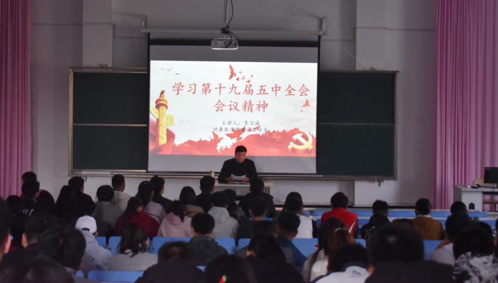 会上,李宝成同志尤其就《中共中央关于制定国民经济和社会发展第十四个五年规划和二〇三五年远景目标的建议》中关于建设高质量教育体系、全面推进健康中国建设、实施积极应对人口老龄化国家战略、加快培养理工农医类专业紧缺人才等论述做了深刻的解读。要求全系各班级召开学习十九届五中全会精神主题班会,把全会精神学习好、宣传好、贯彻好。推进全会精神进班级、进宿舍、进头脑。