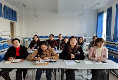 护理系教务科副科长段朝艳主持业务学习。护理系副主任孔玉涛说:“身为医学专业院校,终生学习是全体师生的共同目标,作为一名教师更应该为学生树立标杆,不断提高自身专业素养和课堂教学效率,带动学生树立终生学习的观念,更好的培育优秀的护理人才”。
