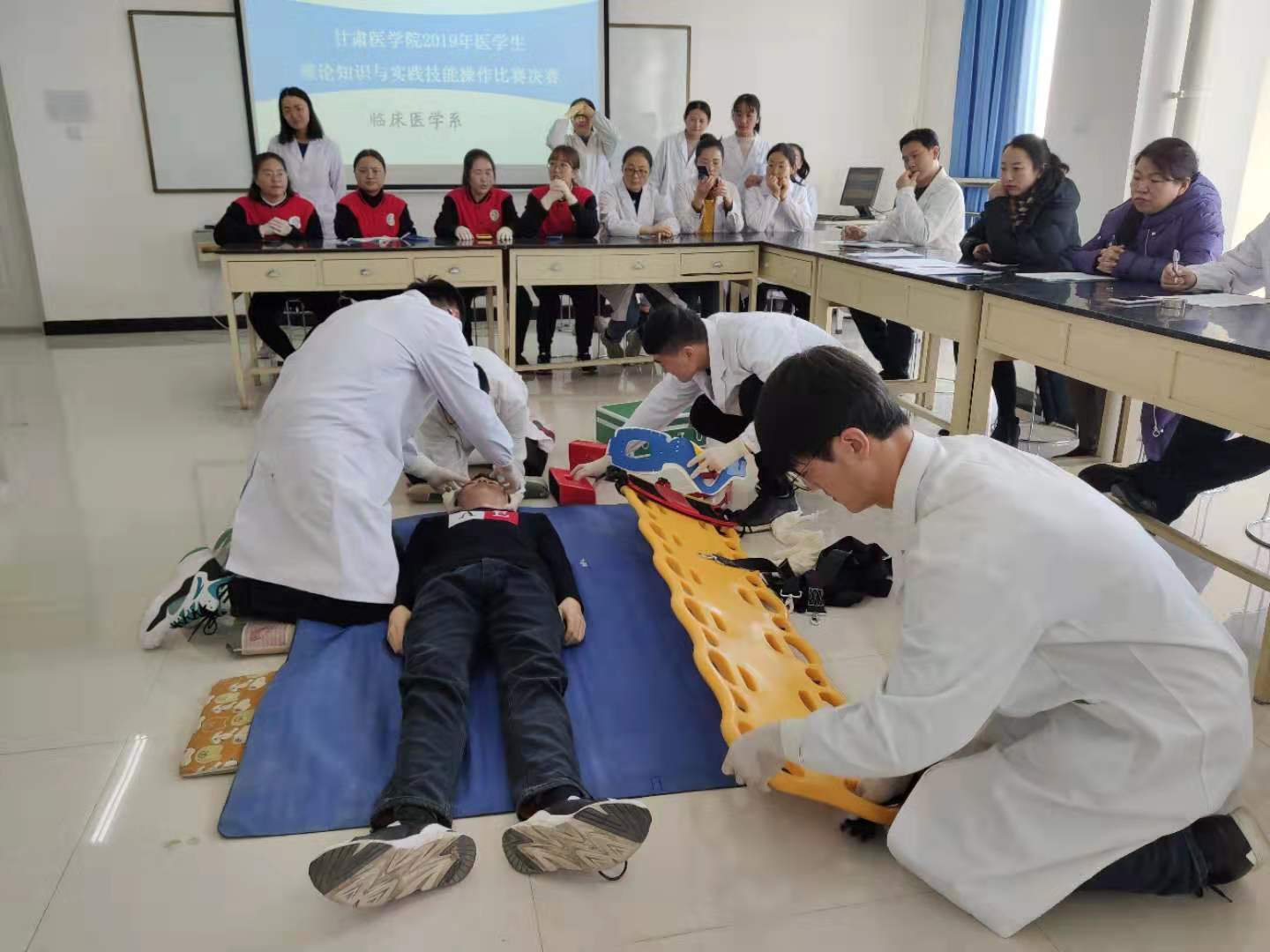 为进一步提高医学生的临床知识和临床技能,推进本科教育教学改革,搭建医学生展示交流的平台,提升临床实践教学整体水平,12月7日,根据学院统一安排,由临床医学系承办的首届医学生临床知识与临床技能比赛于2号实验楼内科实训室举行。2016级临床医学本科专业341名学生经过理论及基本操作初赛,最终44名同学脱颖而出参加了本次决赛。比赛分团体及个人赛,共3个比赛项目,分别为个人赛的气管插管术及胸腔穿刺术,团体赛的脊柱损伤急救与搬运。为了保证比赛的公正性及专业性,邀请了内科教研室及外科教研室资深临床专业课教师担任评委。