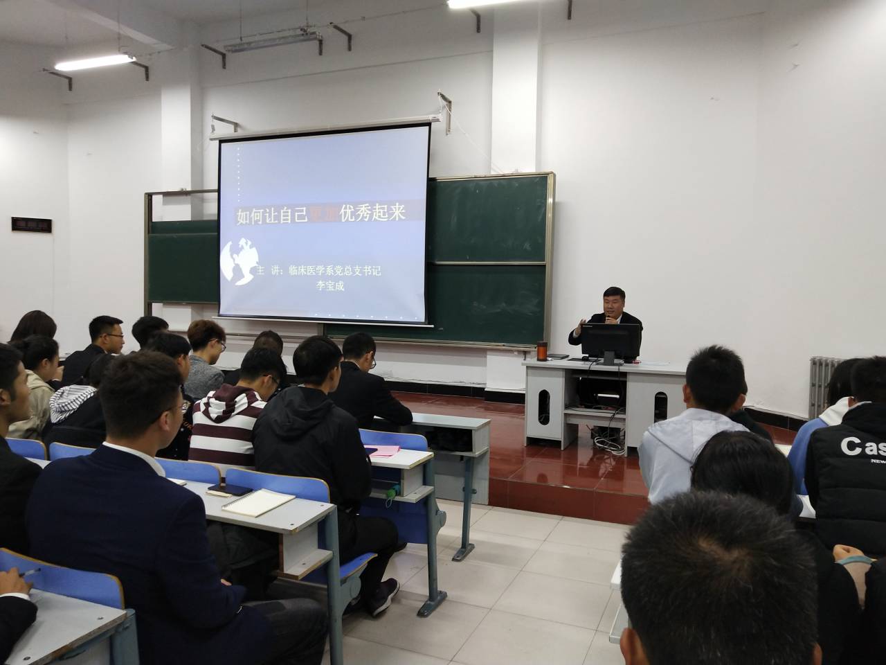 为提高学生干部的个人修养,加强学生干部与同学之间的交流沟通,进一步的促进我系学生工作更好的开展。甘肃医学院临床医学系学生干部培训会于2019年10月15日晚在第四大教召开。本次培训的主讲老师为甘肃医学院临床医学系党总支副书记李宝成,参与者为临床医学系学生会全体成员以及我系18、19级各班班委。
