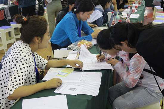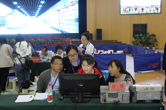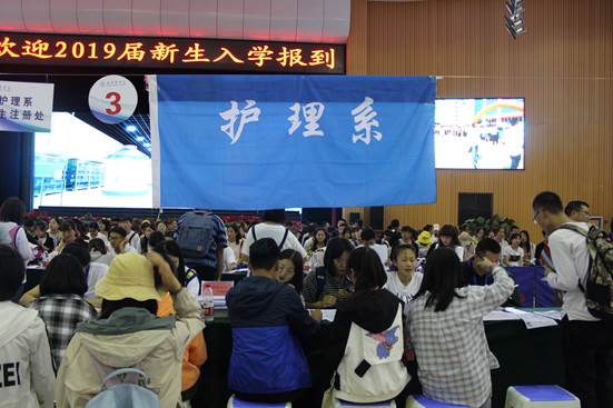 新生报到现场,护理系副主任孔玉涛、护理系党总支负责人王萍、护理系办公室副主任刘磊、护理系团总支书记李红强、16级年级主任刘爱生与2019级各班班主任、志愿者们共同参与新生报到注册工作。