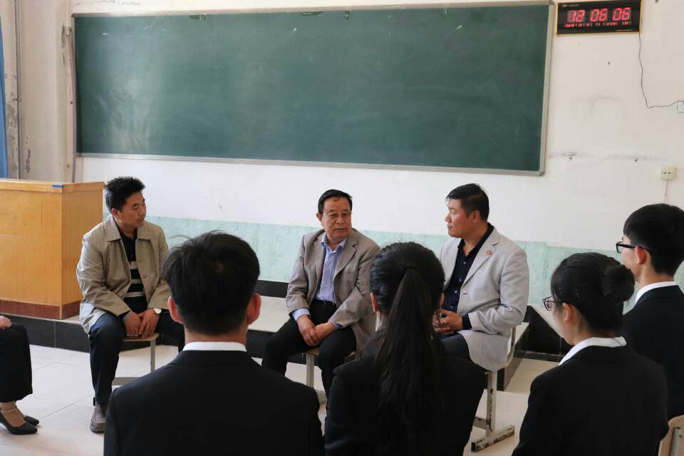 为深入贯彻落实全国教育大会精神,创新大学生思想政治教育形式和内容,使大学生深刻感受中国的历史性变革和伟大成就,教育引导广大青年学生坚定“四个自信”,切实增强广大青年对中国共产党的领导和中国特色社会主义的思想认同、情感认同、价值认同,落实省教育厅“读懂中国”活动,彰显“五老”同志崇高的精神风貌和关爱后辈的责任担当, 2019年5月23日,甘肃医学院临床医学系特邀我院退休老教师,原平凉医专党委副书记、外科学教授王文新同志,原平凉医专教师、和平医院院长、内科学教授苏智民同志,原平凉医专工会主席、生理学教授刘让元同志莅临我系,开展“积极发挥‘五老’优势,共育时代新人”主题座谈会,出席本次座谈会的有:甘肃医学院临床医学系党总支副书记李宝成、甘肃医学院临床医学系学生管理科科长周永红及全体学生干部。