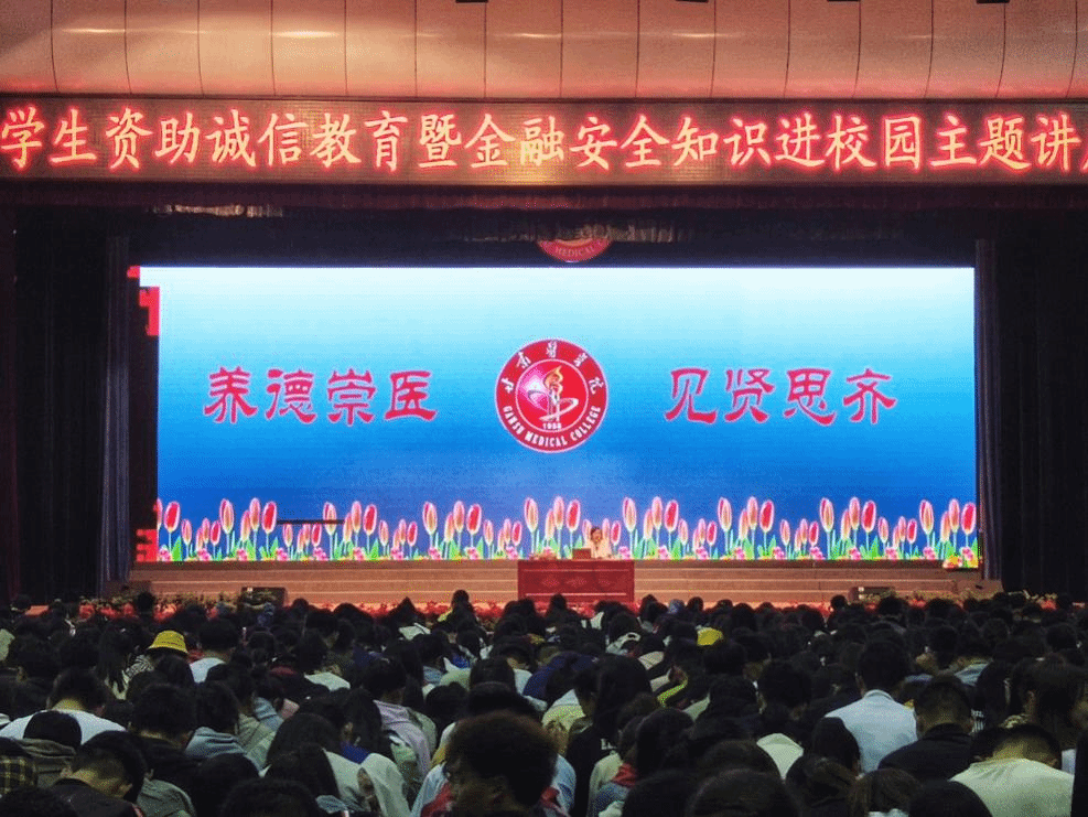 为提高学生的金融安全意识、预防金融诈骗,5月19日晚甘肃医学院临床医学系在学生工作处的统一安排下特邀请中国建设银行平凉东街分行副行长贾雨琼同志在学校体育馆为临床医学系全体师生做“提高金融安全意识、预防金融诈骗手段”专题讲座,讲座由临床医学系党总支副书记李宝成主持。