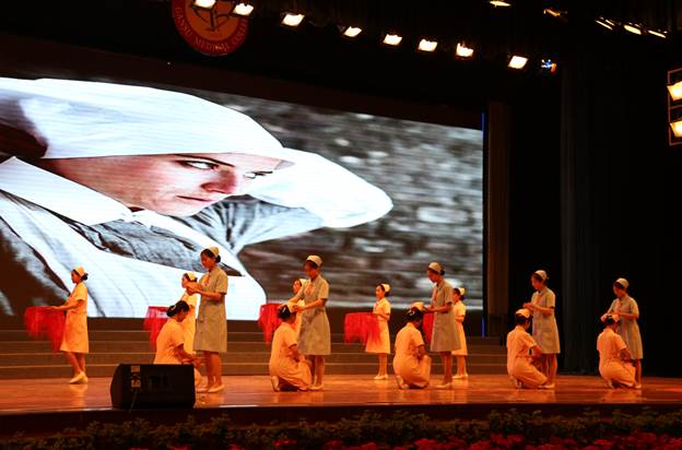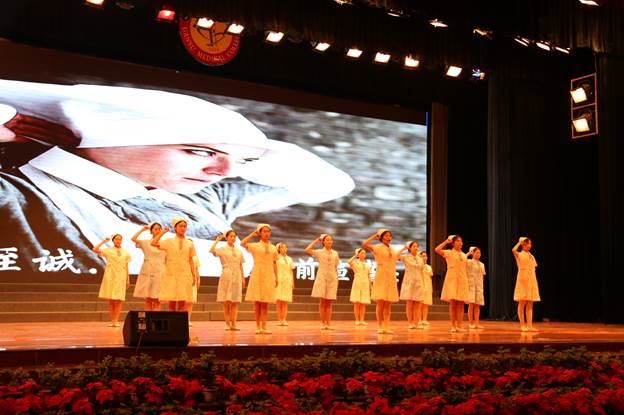 携爱鸢尾开,五月天使来。在第108个国际护士节到来之际,为传承与弘扬南丁格尔精神,树立学生的职业价值感,增强学生的职业自豪感和社会责任感。5月12日晚,护理系在学院体育馆举行了“庆祝5·12国际护士节系列活动之舞台剧展演”。参加本次活动的有护理系副主任孔玉涛,护理系党总支负责人王萍,护理系团总支书记李红强,16级年级主任刘爱生,17级年级主任贾琚杰,护理系各班班主任、辅导员及护理系全体学生。