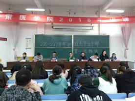 2019年3月12日下午五点,护理系在1号教学楼第四大教室举行了2018-2019学年第二学期第一次学生干部培训会,参加会议的有护理系党总支负责人王萍、团总支书记李红强、各年级主任、17、18级辅导员及护理系全体学生干部共计260多人。