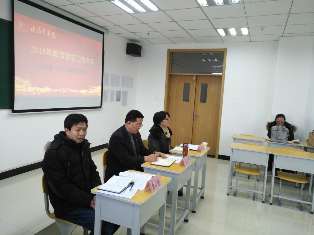 会议第三项议程为分组讨论,公共课教学部组为第三讨论组,共有29名教师参加讨论,讨论由第三分组召集人黄砚主任主持,我院崔安平书记莅临本小组,与各教研室教师一起,热烈讨论了王坤院长的精彩报告.