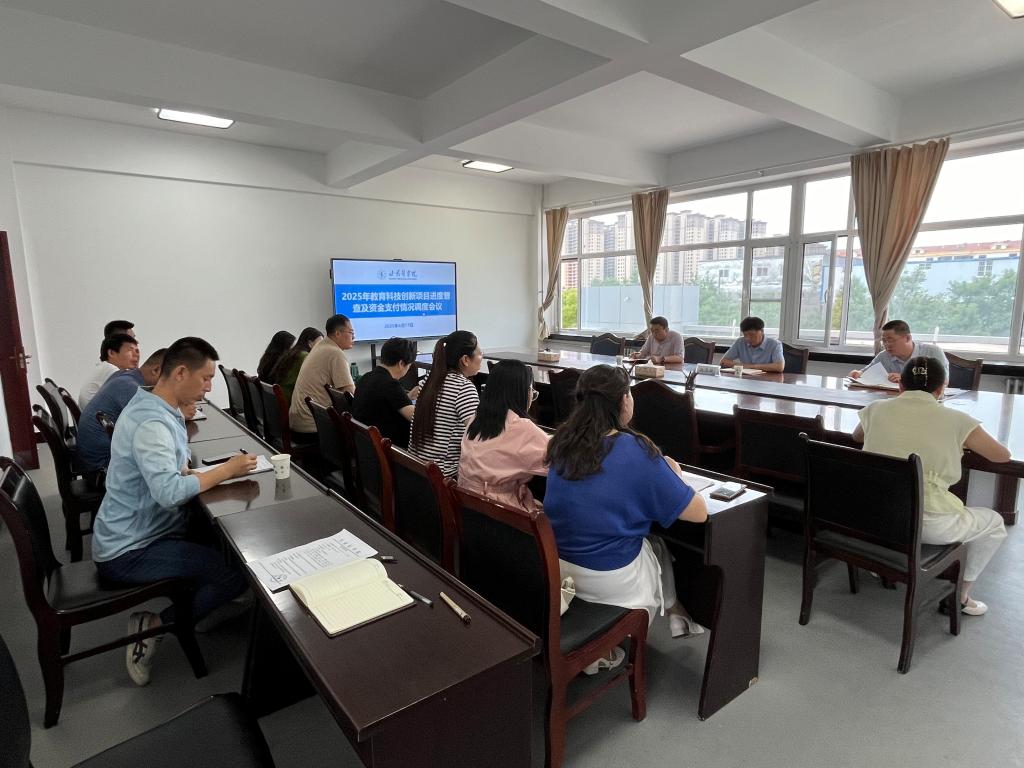 6月17日下午,学校在办公楼305会议室召开了2025年教育科技创新项目进度督查及资金支付情况调度会议。会议由科研处负责人吕小旭主持,党委委员、副校长赵玉敏出席会议并讲话,计划财务处处长朱天荣以及2025年教育科技创新项目负责人参加会议。