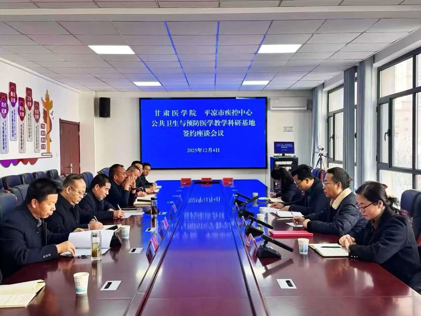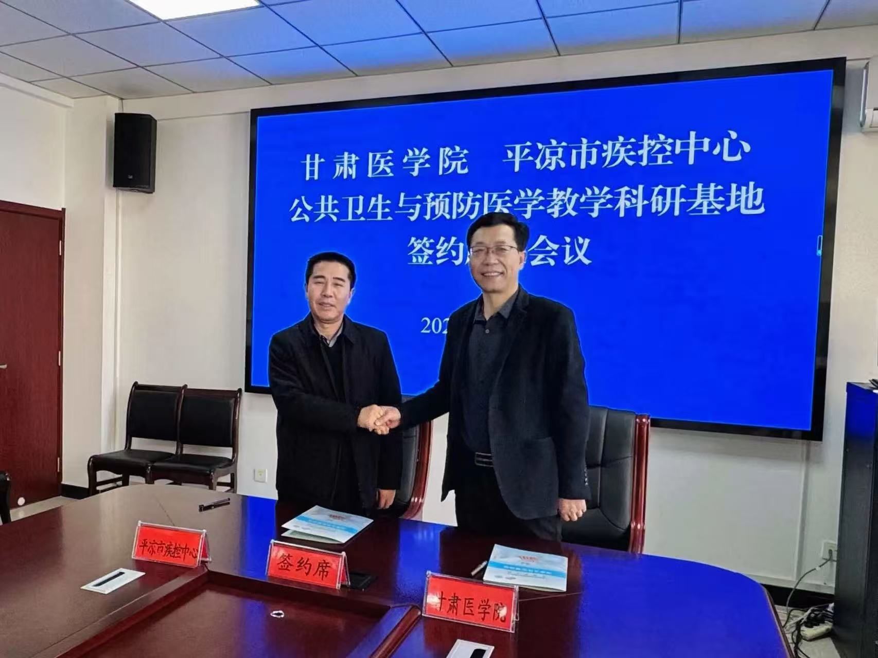 揭牌仪式后,双方举行了合作座谈暨签约仪式。双方分别介绍了有关情况,在与会人员的共同见证下,李东禄院长与席国平主任代表双方签订了《甘肃医学院公共卫生与预防医学教学科研基地协议书》。与会人员围绕实践教学安排、科研项目合作、人才联合培养、资源共享机制等内容进行了深入交流与协商。