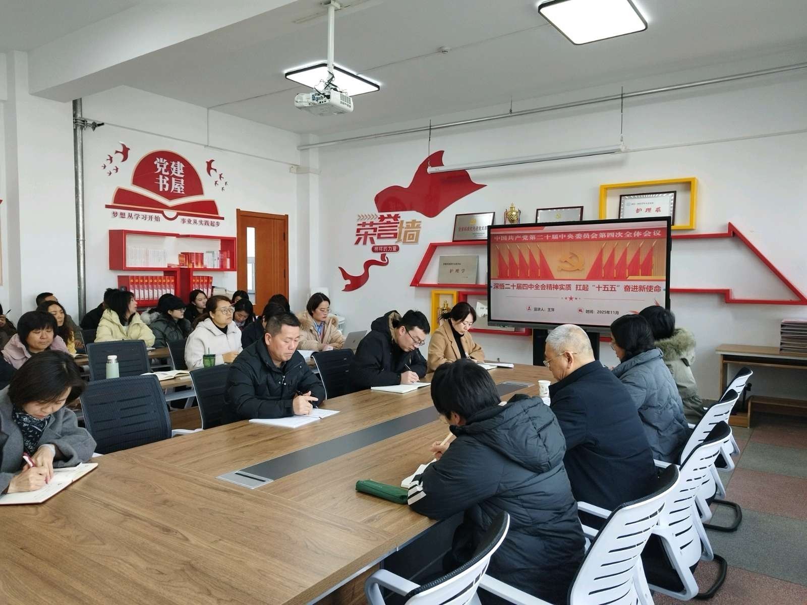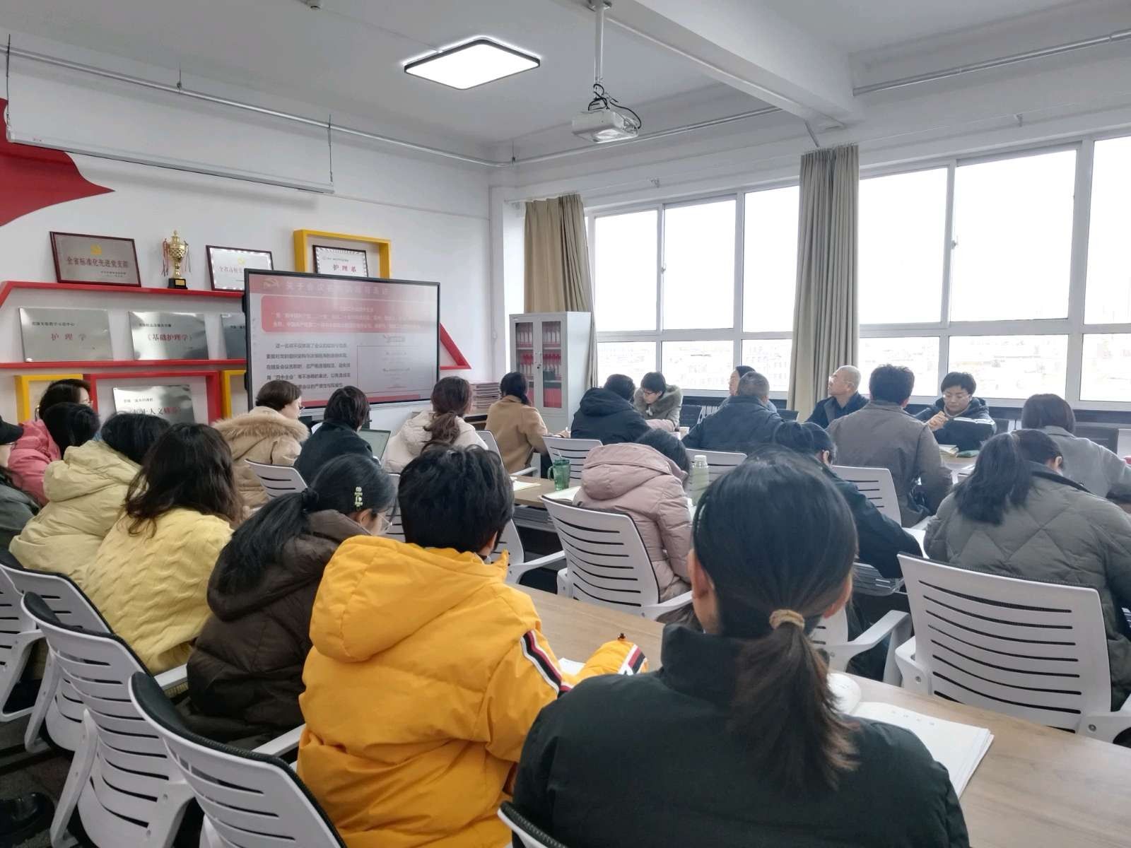 与会党员和教师认真聆听,并围绕学习内容进行了交流。大家纷纷表示,此次专题党课系统全面、重点突出、联系实际,深化了对全会精神的理解和把握。作为新时代的护理教育工作者,深感责任重大、使命光荣,在今后的工作中,将以全会精神为指引,牢记“为党育人、为国育才”的初心使命,将学习成果转化为攻坚克难、推动发展的强大动力和实际成效,以更加昂扬的姿态、更加扎实的工作,奋力书写护理学院事业发展新篇章,为学校高质量发展和服务人民健康事业作出新的更大贡献。