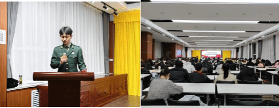杨新丽以生动的语言阐述了参军入伍为个人发展带来的机遇、为家庭增添的荣光,深刻剖析了军旅生活所蕴含的战友情谊与人生淬炼,动员同学们把握时代机遇,将个人理想融入强国强军伟业。