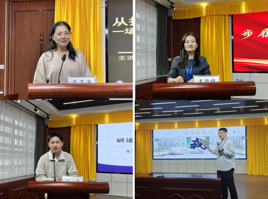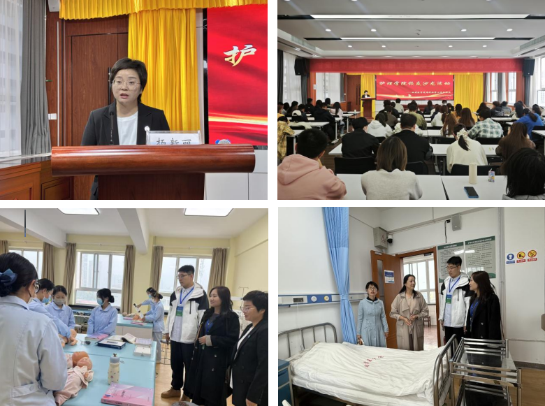 活动开始前,护理学院副书记、副院长杨新丽与教务科科长段朝艳带领优秀校友实地参观了护理学院省级实验教学示范中心,详细介绍了功能布局、先进模拟教学设备配置以及实践教学理念。随后杨书记的精彩开场为活动拉开帷幕。孔玉涛教授以《从护理学生到护理教授:一场跨越四十余载的守护与传承》为题,分享了四十余年的护理教育与临床实践心得;优秀校友王转福以《步履不停平凡亦可达远》讲述了自己在平凡岗位上的坚守与成长;程虎则围绕考研经验进行题为《研途有光:心之所向素履以往》的交流;齐耀东带来的《双创思维:驱动当代大学生卓越成长的引擎》主题讲座,也成功激发了学生们的创新意识。在交流互动环节,同学们踊跃提问,与老师、学长学姐围绕专业学习、科研实践、职业规划等话题展开深入交流,现场气氛热烈。