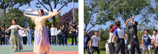 开幕式上,裁判员代表庄严宣誓,承诺严守竞赛规则、秉持公正判罚;运动员代表亦郑重宣誓,将恪守“友谊第一,比赛第二”宗旨,奋勇拼搏、尊重对手。宣誓环节后,文艺表演精彩上演:炫动健美操协会的《爱的主打歌》以活力舞步点燃气氛,HAPPY舞协的古典舞《咏春》用优美舞姿勾勒春日生机,赢得现场阵阵喝彩。最后,杨新丽鼓励运动员以饱满热情投入比赛,在赛场挥洒汗水、展现自我,通过赛事增强凝聚力与集体荣誉感。随着她宣布比赛正式开始,运动员与裁判员有序上场,“迎新杯”篮球赛就此拉开战幕。