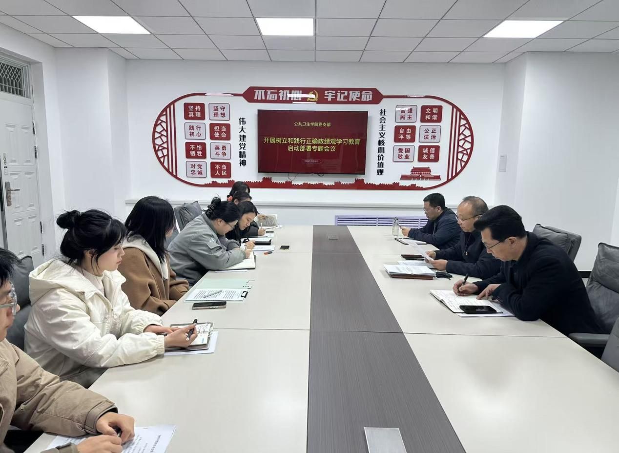 为深入贯彻党的二十大和二十届历次全会精神,认真落实党的二十届四中全会部署,全面贯彻习近平总书记关于树立和践行正确政绩观的重要论述及视察甘肃重要讲话重要指示精神,扎实推进树立和践行正确政绩观学习教育走深走实,3月10日公共卫生学院党支部召开树立和践行正确政绩观学习教育启动部署专题会议,全体党员参加会议。