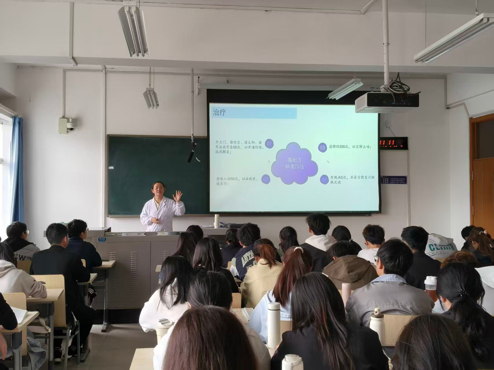 为深化课程思政建设并提升育人水平,皇甫谧学院于2026年4月13日举办了公开教学活动。赵敏老师为针灸推拿2301班讲授了《小儿推拿学》中“感冒与咳嗽的推拿治疗”一课,学院领导及相关教师参与观摩。