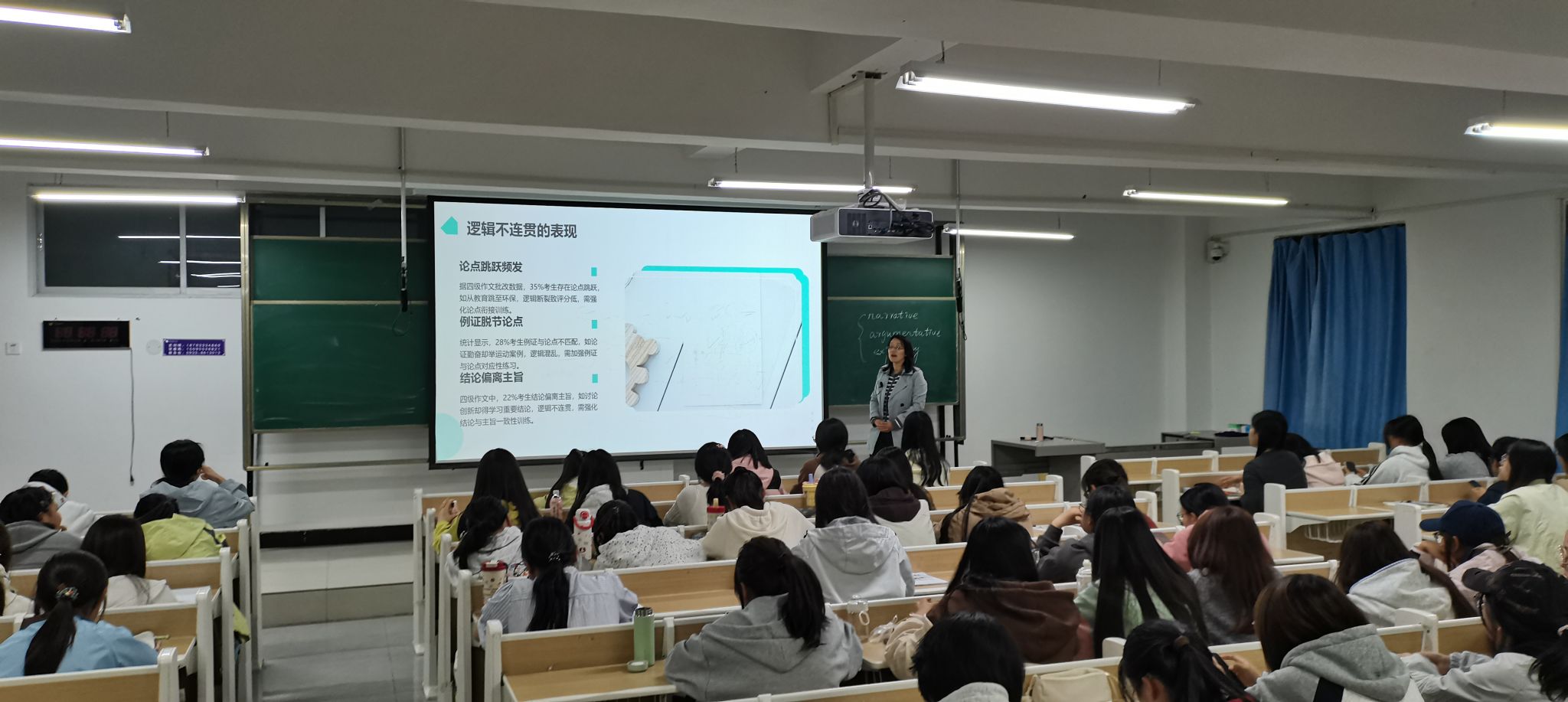 为帮助学生高效备战全国大学生英语四、六级考试,4月14日开始,公共课教学部组织英语教研室教师,分批开展大学英语四级考前专项辅导系列讲座和模考训练,通过前三场的讲座和模考,众多备考的学子都能踊跃参与。