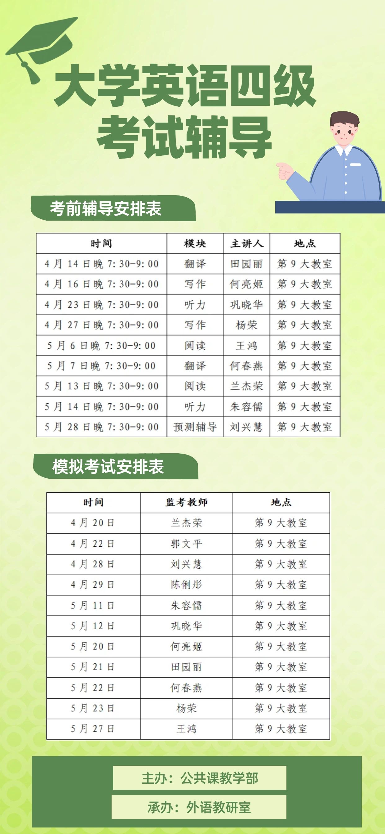 希望广大同学珍惜学习机会,积极参与系列辅导活动,充分吸收备考技巧、积累应试经验,在即将到来的全国大学生英语四、六级考试中取得显著成绩!