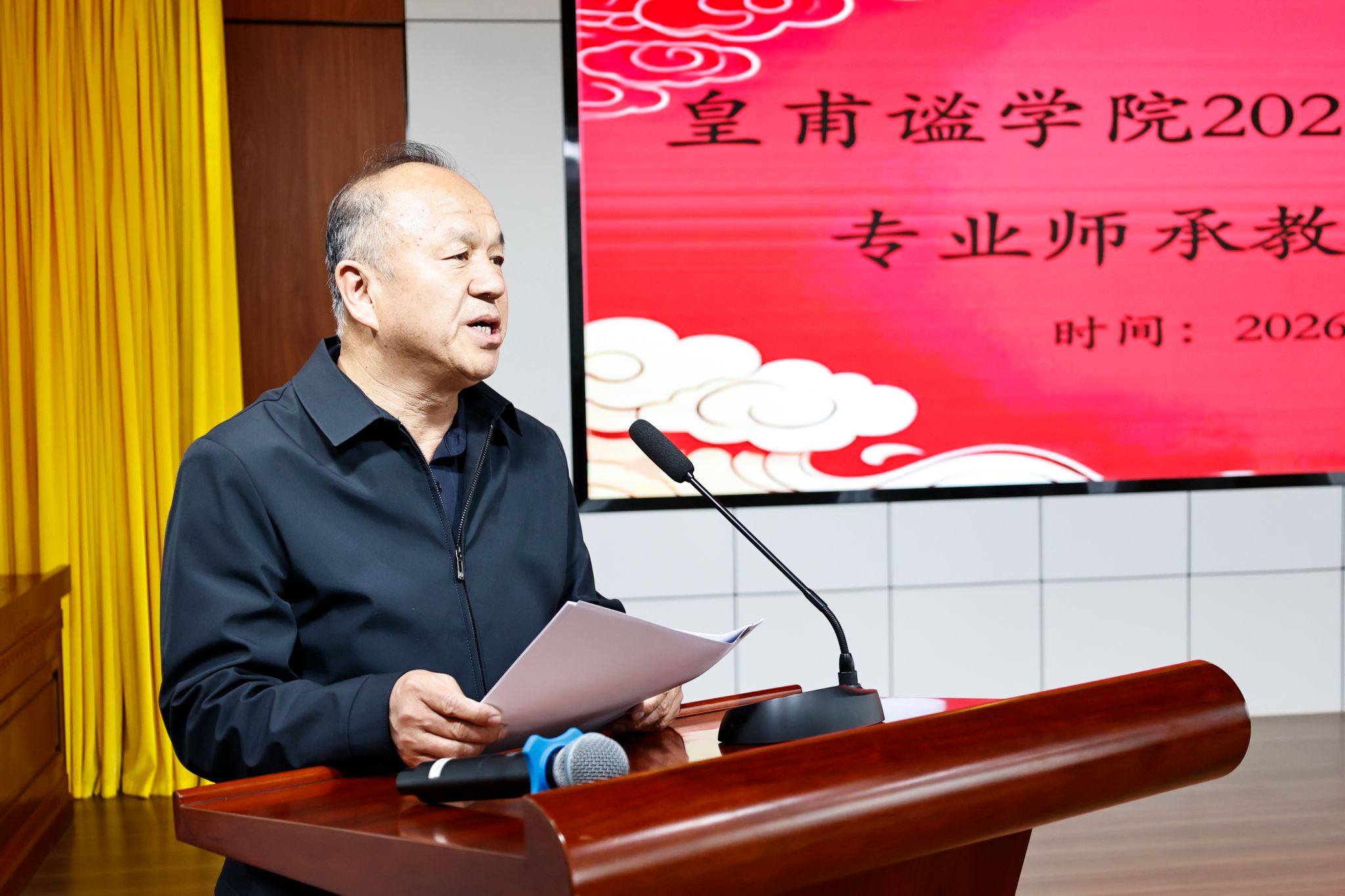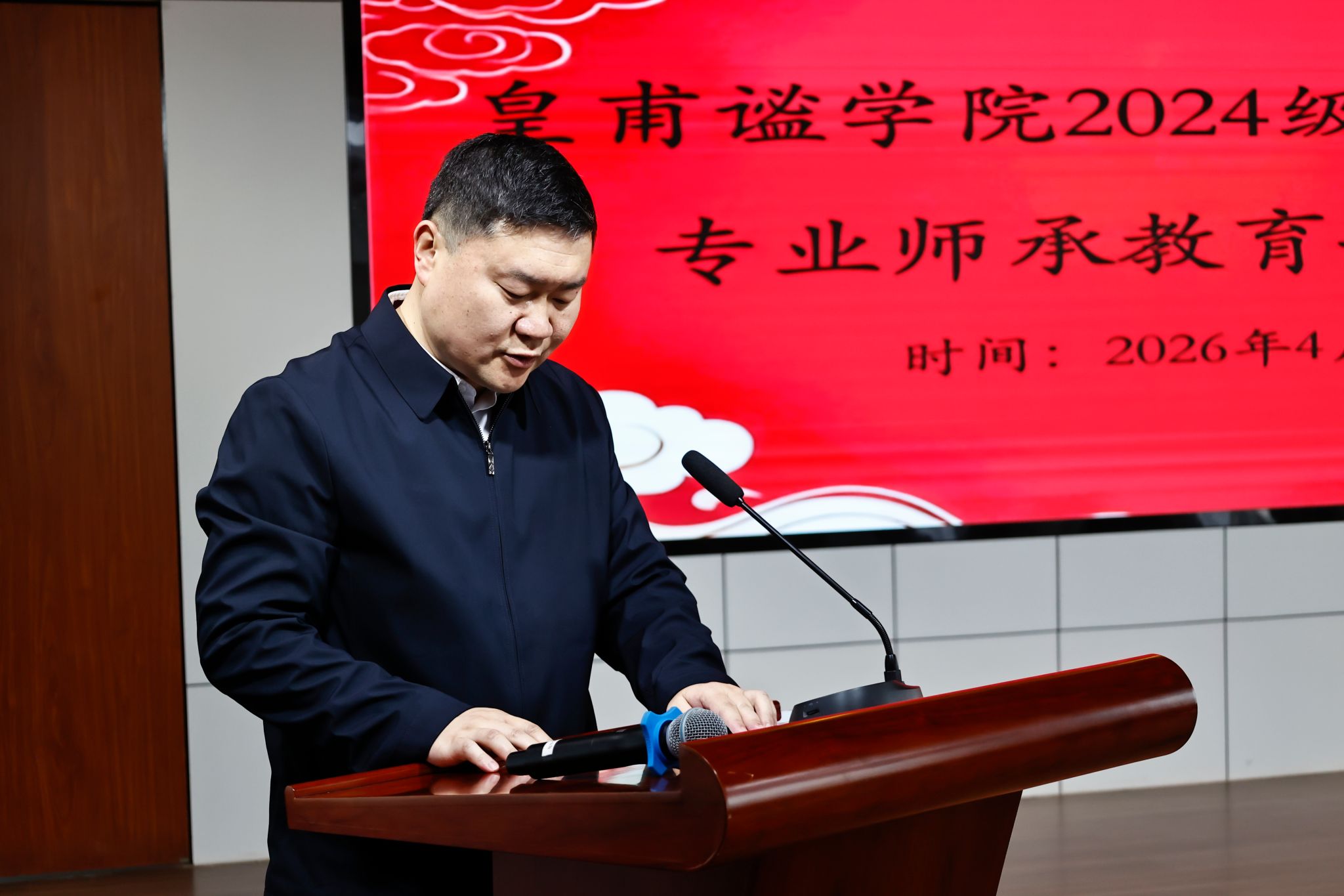 皇甫谧学院党总支书记王志江现场宣读师承结对名单。师徒双方郑重签署师承带教协议,以一纸契约立下传道授业、求学精进的郑重承诺。
